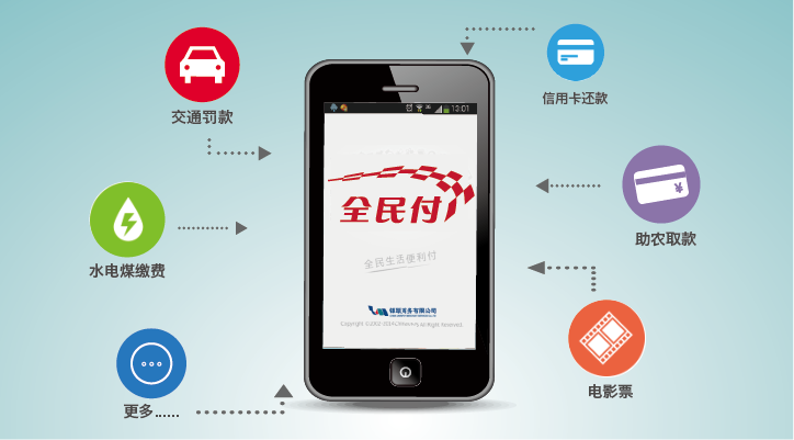 据不完全统计,,,“全民付”平台上已接入近30类业务品种、、、941个出账机构,,,内容涵盖公共事业、、、公共交通、、、医院保险以及助农扶农等领域。。。借势移动互联新技术,,,“全民付”缴费渠道从传统线下终端、、、线上互联网向手机移动客户端延伸,,,“全民付”APP除了具备上述功能,,,还新增了O2O营销频道“全民惠”、、、理财频道“日日生金”等,,,“全民付”成为以支付为核心的便民缴费门户类APP的定位越来越清晰可见。。。