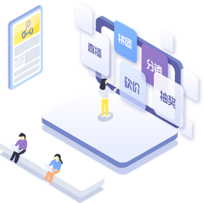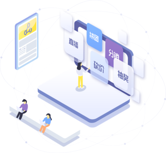 社交零售商城解决方案,,,为商户提供直播带货、、、拼团、、、砍价、、、分销、、、抽奖等近百种营销插件,,,帮助商户利用社交裂变,,,快速抢占微信10亿+用户流量。。。